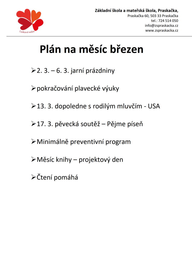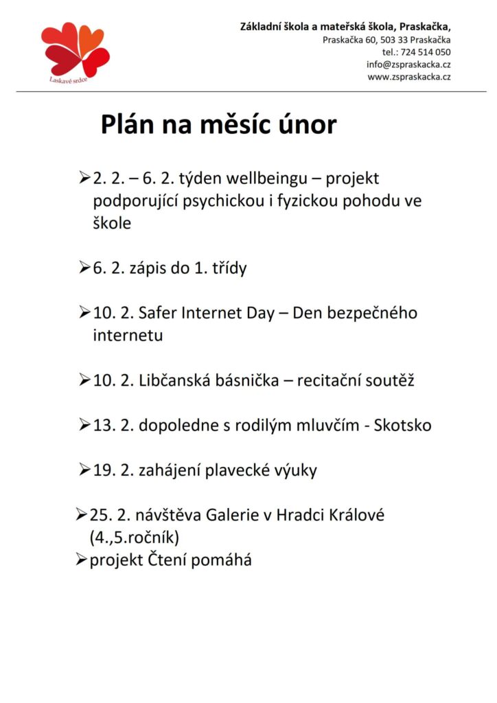 Plán na měsíc únor 2026